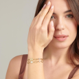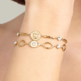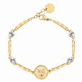 Dámsky oceľový náramok Brosway z kolekcie Chakra s krištáľmi a so symbolom sovy. Náramok je pozlátený žltým zlatom.