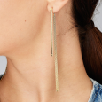 Vďaka svojej dĺžke pôsobia náušnice veľmi žensky, pri pohybe krásne pracujú so svetlom a opticky predlžujú krk. Sú ideálnou voľbou k jednoduchému outfitu, ktorý pozdvihnú, ale aj k večernému looku, ktorému dodajú noblesu a moderný akcent.