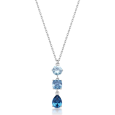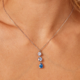 Dámsky oceľový náhrdelník BROSWAY s jemnou retiazkou a výrazným príveskom tvoreným trojicou modrých krištáľov v gradácii od svetlého po tmavý odtieň. Kombinácia rôznych výbrusov vytvára krásnu hru svetla a dodáva šperku elegantný, žensky pôsobiaci charakter.