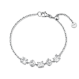 Dámsky oceľový náramok BROSWAY zdobený piatimi čírymi krištáľmi rôznych brusov, ktoré pri nosení vytvárajú elegantnú hru svetla. Jemná retiazka pôsobí ľahko a necháva vyniknúť žiarivému centru šperku.