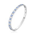 Dámsky oceľový náramok BROSWAY With You v striebornom tóne zdobený svetlomodrými krištáľmi. Pevná, hladká línia náramku je z vrchnej strany otvorená jemnými výrezmi, v ktorých sú pravidelne osadené okrúhle brúsené krištále s výrazným leskom.