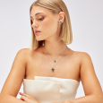 Dámsky strieborný prívesok BROSWAY krížik zo striebornej kolekcie Fancy so zelenými zirkónmi.