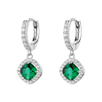 Elegantné náušnice kombinujúce číre a zelené zirkóny zaujmú svojím prepracovaným dizajnom. Na jemnom kruhu visí štvorec s centrálnym zeleným kameňom, lemovaný drobnými čírymi zirkónmi. Žiarivý a ženský šperk, ktorý dodá každému outfitu noblesu.