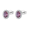 Strieborné dámske náušnice BROSWAY zdobí oválny ružový kamienok, ktorý je po obvode doplnený drobnými čírymi kamienkami.