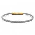 Dámsky kožený náramok sivej farby s oceľovým zapínaním. Oceľ je pozlátená žltým zlatom.