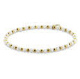 Dámsky oceľový náramok s bielymi a oceľovými guličkami. Oceľové časti sú pozlátené žltým zlatom.