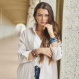 Dámsky náramok z tigrieho oka s oceľovými kompotentmi a príveskom.