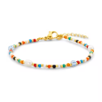 Dámsky náramok s farebnými korálkami a sladkovodnými perlami. Retiazka je pozlátená žltým zlatom.