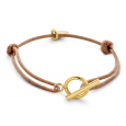Dámsky textilný náramok s oceľovými komponentmi. Oceľové časti sú pozlátené žltým zlatom.