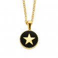 Dámsky oceľový náhrdelník hviezda s čiernou glazúrou pozlátený žtlým zlatom.