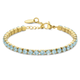 Dámsky oceľový tenisový náramok so zirkónmi svetlomodrej farby pozlátený žltým zlatom.