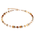 COEUR DE LION oceľový dámsky náhrdelník s polarisom, syntetickým tigrím okom a krištáľom Swarovski pozlátený ružovým zlatom.