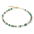 COEUR DE LION oceľový dámsky náhrdelník s krištáľmi Swarovski, syntetickým tigrím okom a prírodnými kameňmi: zelený avanturín, amazonit, howlit a nefrit.