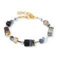 COEUR DE LION oceľový dámsky náramok s kremeňom, achátom, ónyxom, hematitom a krištáľom Swarovski pozlátený žltým zlatom.