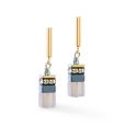 COEUR DE LION oceľové dámske náušnice s achátom, hematitom a Swarovski krištáľmi pozlátené žltým zlatom.