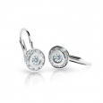 Detské náušnice z bieleho 14 karátového zlata, v jednoduchom dizajne kruhov, zdobené čírymi zirkónmi.