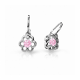 Detské náušnice z bieleho 14 karátového zlata, v roztomilom dizajne kvietkov, zdobené ružovým zirkónom.