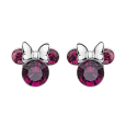 Detské strieborné náušnice DISNEY Minnie so zirkónmi vínovej farby.