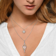 Dámsky strieborný náhrdelník ENGELSRUFER so symbolmi mesiaca, hviezd a slnka so vnútri s ruženínom ako symbolom lásky a harmónie.