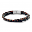 Pánsky dvojradový kožený náramok s tigrím okom.