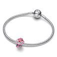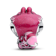 Strieborná DISNEY x PANDORA korálka Mačka Škľabka z rozprávky Alica v krajine zázrakov so svetlo ružovu glazúrou, tmavo ružovou trblietavou glazúrou a žltou glazúrou (očká), ktorá v tme svieti.