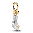 DISNEY X PANDORA korálka Popoluškina črievička s pozlátenými detailmi, doplnená jemnou živicou s leskom skla a detailom v podobe mašličky na očku. Korálku zdobí laboratórny diamant 0,012 ct, G–I, VS+.
