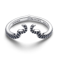 Dámsky strieborný prsteň DISNEY X PANDORA inšpirovaný ikonickými rohmi Maleficent. Otvorený dizajn prsteňa je tvarovaný do výraznej siluety rohov, ktoré zdobia čierne krištále osadené pozdĺž vrchnej línie. Precízne spracovanie a mierne špicaté zakončenie zadnej časti obrúčky dodávajú šperku temne elegantný a výrazný charakter.