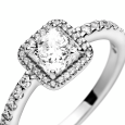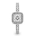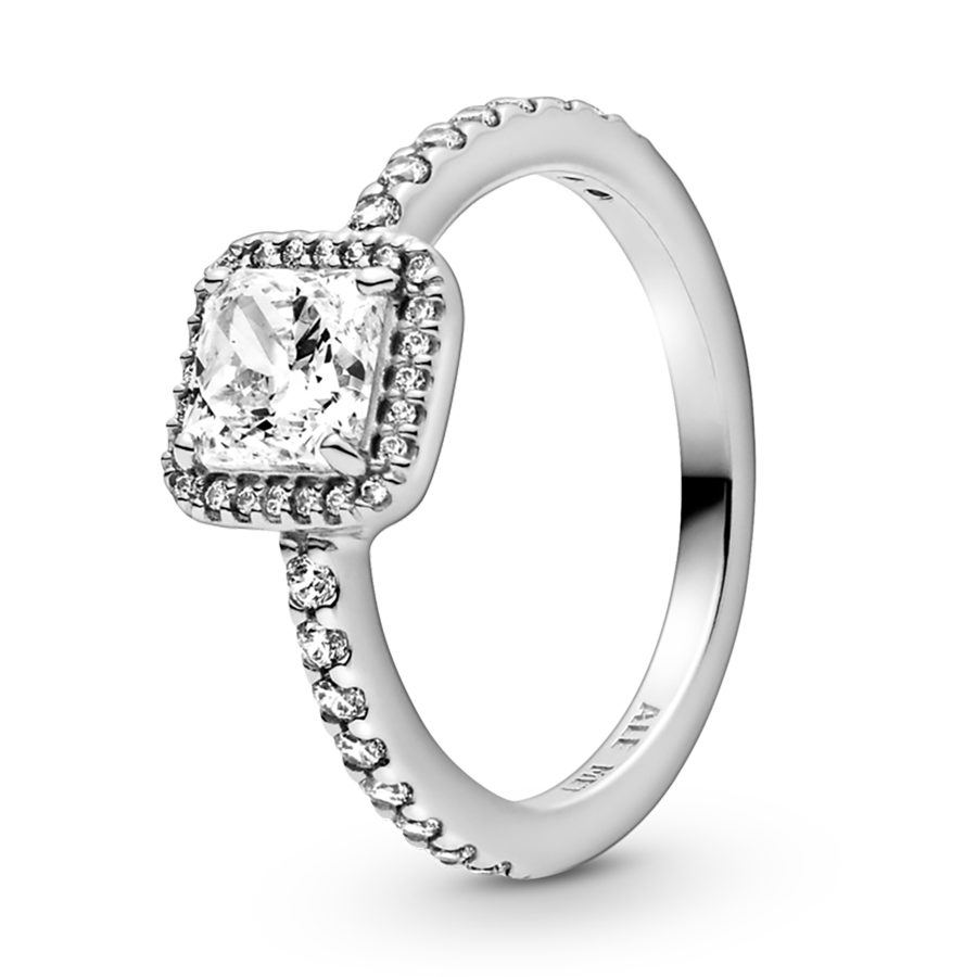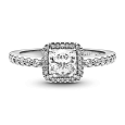 PANDORA strieborný štvorcový halo prsteň so zirkónmi čírej farby.
