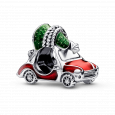 Strieborná PANDORA korálka autíčko s vianočným stromčekom s gravírovaním "Home for Christmas" (Domov na Vianoce) a "X-MAS" (Vianoce) s červenou a zelenou glazúrou.