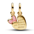 Pozlátená PANDORA visiaca korálka je tvorená dvojicou rozdeliteľných sŕdc, z ktorých väčšie dopĺňa ružová umelá perleť. Na srdciach je gravírovanie „mother“ (mama), „daughter“ (dcéra) a väčšie srdce má gravírovanie aj na zadnej strane „I would choose you in every lifetime“ (Vybrala by som si ťa v každom živote).