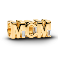 Pozlátená PANDORA korálka má podobu výrazného nápisu „MUM“ doplneného čírymi zirkónmi na prednej strane. Dizajn je obojstranný, pričom zadná strana je z hladkého kovu.