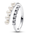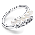 Strieborný otvorený PANDORA prsteň so sladkovodnými bielymi perlami a čírymi zirkónmi.