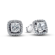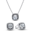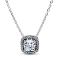 PANDORA strieborný set náhrdelník a náušnice halo štvorec: 393560C02-45 a 293551C02.