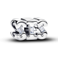 Strieborná PANDORA korálka má podobu výrazného nápisu „SIS“ doplneného čírymi zirkónmi na prednej strane. Dizajn dopĺňa zrkadlovo otočené písanie na zadnej strane a hladký povrch kovu.