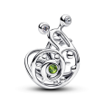 Strieborná PANDORA korálka má podobu slimáčika s otvoreným spracovaním a jemným bodkovaným zdobením. Dizajn dopĺňajú číre zirkóny na tykadlách a svetlozelený krištáľ v strede ulity, ktorý dodáva motívu svieži farebný akcent.
