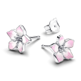 Strieborné náušnice PANDORA majú motív čerešňového kvetu a zdobí ich ručne nanášaná glazúra v odtieňoch jemne ružovej, bielej a transparentnej. Jemne tvarované lupienky okvetných lístkov sa krásne dopĺňajú s detailnou štruktúrou tyčiniek a dodávajú náušniciam prirodzený šarm a harmóniu.