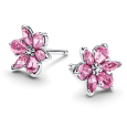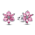 Strieborné náušnice PANDORA TIMLESS majú tvar kvetu s ružovými zirkónmi.