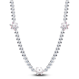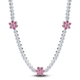 Strieborný náhrdelník PANDORA TIMLESS tvorí línia čírych zirkónov doplnená piatimi kvetmi z ružových zirkónov, ktoré sú rovnomerne rozmiestnené po celej dĺžke. Dizajn dopĺňa posuvné guľôčkové zapínanie pre nastaviteľné prispôsobenie.