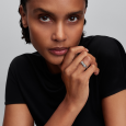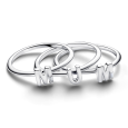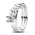 Strieborný prsteň PANDORA má rozdeliteľný dizajn a spolu tvorí nápis „MUM“. Prednú stranu dopĺňajú dva číre zirkóny v tvare baguette a prstene sú navrhnuté tak, aby sa dali nosiť spolu aj vrstviť.