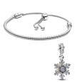 PANDORA strieborný set náramok a korálka Snehová vločka