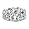 PANDORA strieborný prsteň zdobený zirkónmi čírej farby.