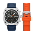 Remienok: modrá koža a druhý náramok oranžový silikón