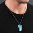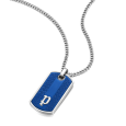 POLICE pánsky oceľový náhrdelník Hang s príveskom s modrou silikónovou výplňou s logom značky.