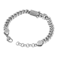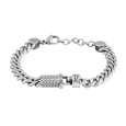 Pánsky náramok POLICE z ocele dopĺňa masívnejšia retiazka v striebornom tóne a výrazný valcovitý detail s plastickou štruktúrou a logom značky.