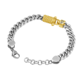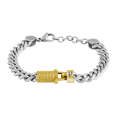 Pánsky náramok POLICE z ocele dopĺňa výrazná retiazka v striebornom tóne a stredový prvok v zlatom odtieni s jemnou štruktúrou.