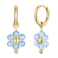 Dámske oceľové náušnice Rosefield s kvetmi. Zdobené modrými sklenenými korálkami. Náušnice sú pozlátené žltým zlatom.