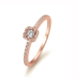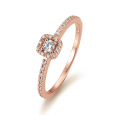 Zlatý zásnubný prsteň z ružového 14 karátového zlata (585/1000) s diamantmi 0,22 ct ct H/SI - v strede 0,08 ct; v kruhu 10 x 0,003 ct a po okrajoch 20 x 0,0055 ct.