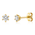 Dva brilianty s celkovou hmotnosťou 0,40 ct (2×0,20 ct) v kvalite H/I1 sú osadené v jemnej korunke, ktorá diamantom poskytuje bezpečné uchytenie a umožňuje im naplno zažiariť. Žlté zlato dodáva náušniciam teplý a klasický vzhľad, ktorý zvýrazní krásu diamantov.