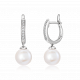 Dámske náušnice zo 14 karátového bieleho zlata so sladkovodnou perlou. Náušnice s diamantmi 0,08 ct H/SI3.