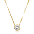Diamant s hmotnosťou 0,40 ct v kvalite E–H / SI1–I1 je zasadený do moderného hladkého lôžka, ktoré diamant opticky zvýrazňuje a zároveň ho dokonale chráni. Jemná retiazka zo žltého zlata podčiarkuje čistý vzhľad šperku, vďaka čomu je tento náhrdelník ideálnym doplnkom na výnimočné príležitosti aj na každodenné nosenie.